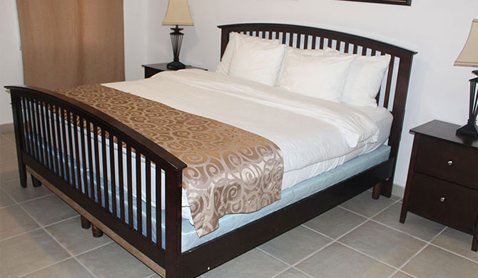 Amplia habitación con una cama tamaño king, aire acondicionado, tv por cable y abanico con vista a las montañas. Baño con ducha de agua caliente. Ocupación máxima 2 adultos y un niño. La tarifa le incluye el desayuno continental para los adultos, los niños menores de doce no pagan la estadía máss si el consumo.